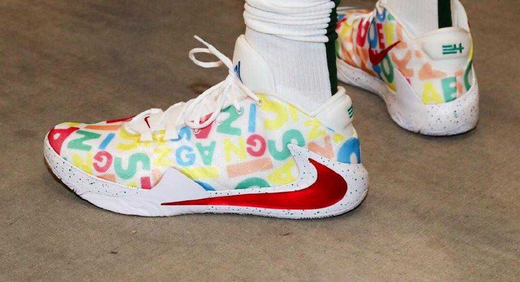 这是前几天字母哥上脚的MVP配色,有点“糖果”和“谷物麦片”的韵味。