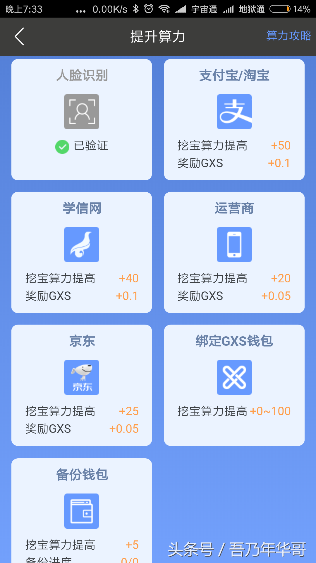 完成这些信息的授权可以提升算力,相当于提升原力值。你看到他的钱包了吗?和比特币钱包一样是通过注册可以获得一个私钥钱包的,一定要保护好哦。
