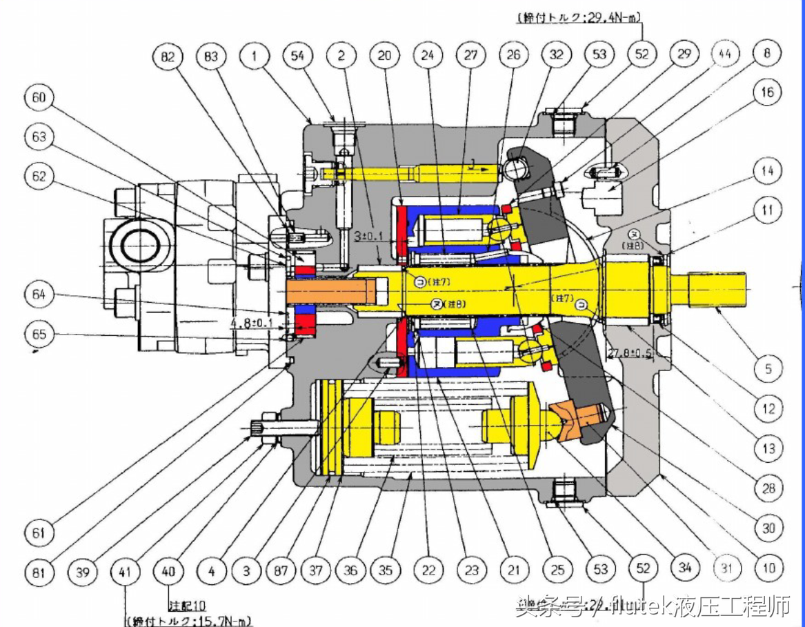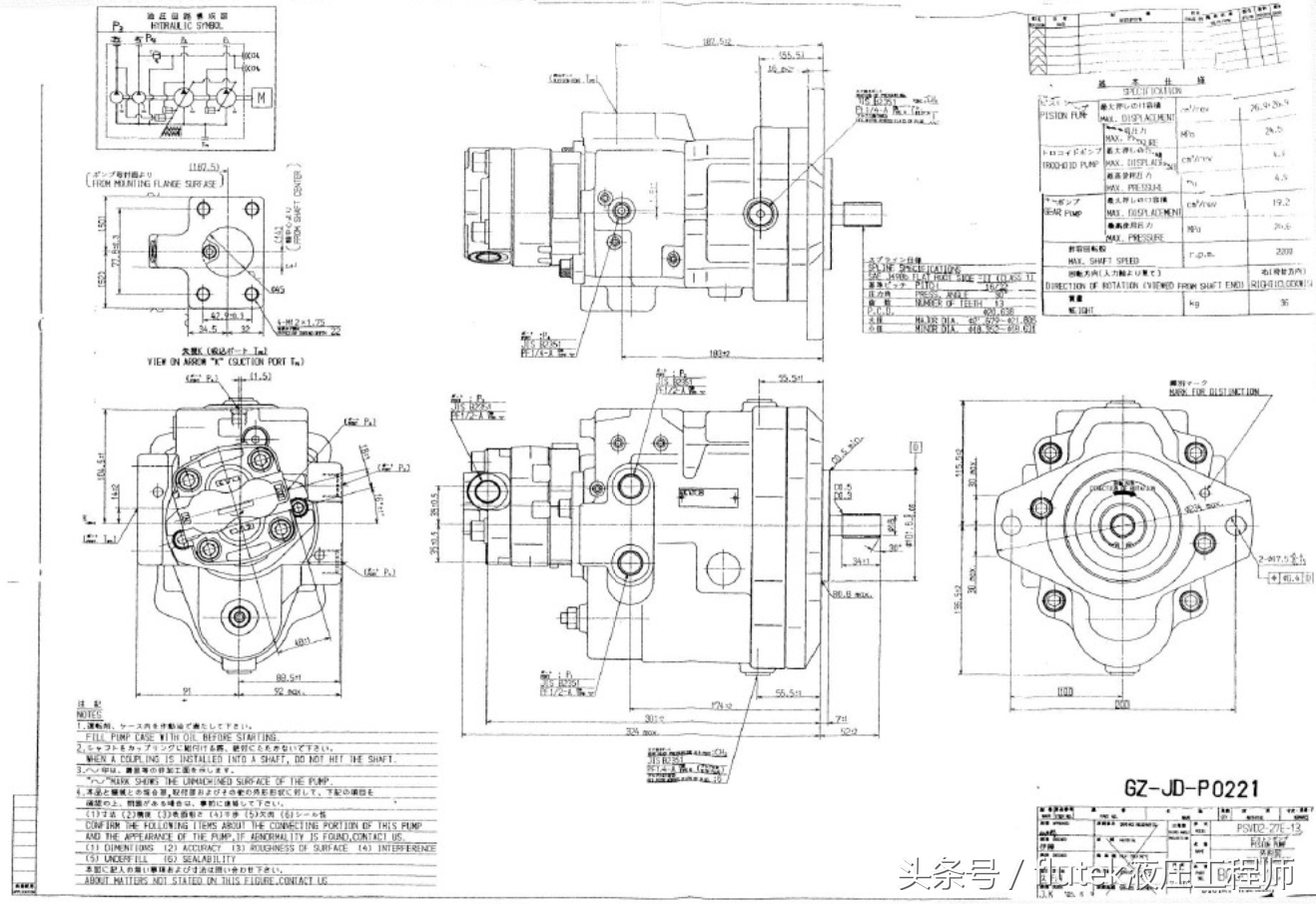 1.期中P1,P2为共用一个回转体的,两个出油口的斜盘轴向变量柱塞泵;P3为高压力齿轮泵;P4为先导齿轮泵;