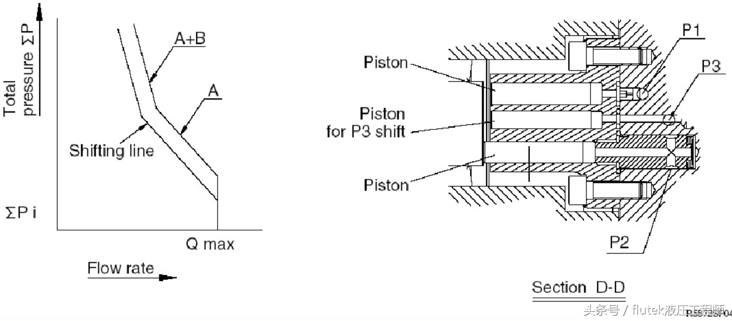 P3供油给:回转、推土铲、斗杆合流、备用(破碎锤);