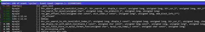 我们可以看到40.4%sy正是系统调用负载较高的表现,随即朋友采集了perf如下: