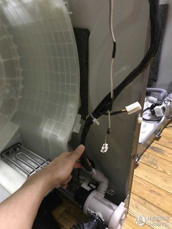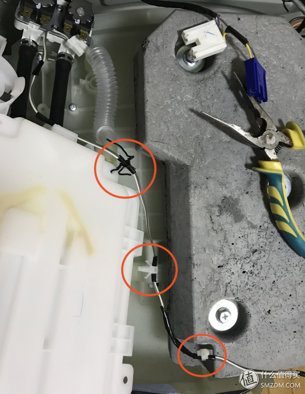 这个角度能看到,排水管在内部走向和电脑版座接触的部分也加了海绵,排水泵的插头转弯处也设计了海绵,都是防止工作时可能产生的碰撞哒哒声。