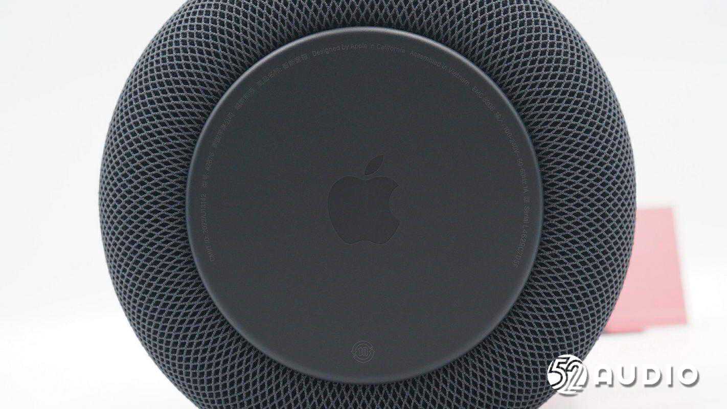 底座设计有苹果品牌LOGO,丝印有参数信息,产品型号:A2878,美国苹果公司越南制造,商品名称:智能音箱,输入:100-240V~50~60Hz1A。