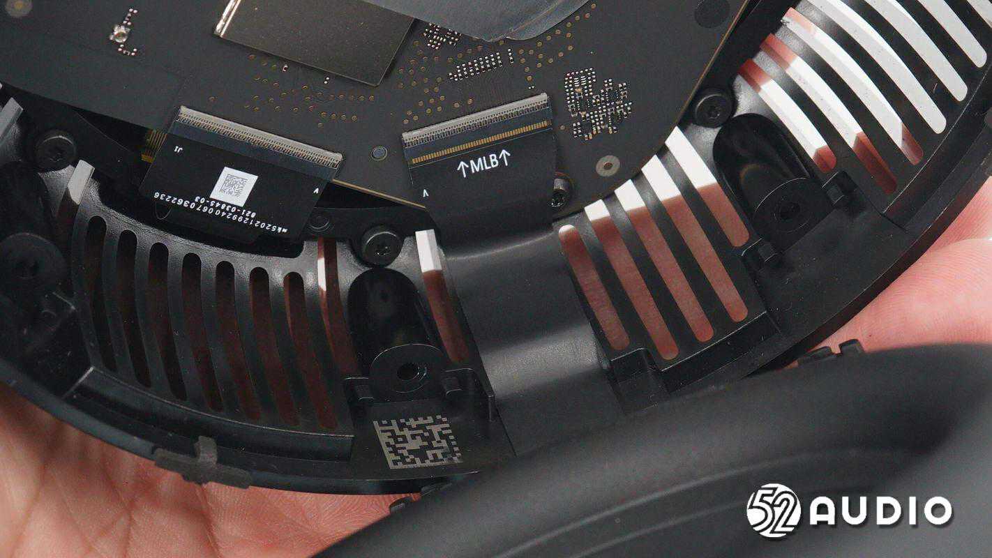 腔体内部结构一览,高音单元上方设置有支架用于固定PCB板。