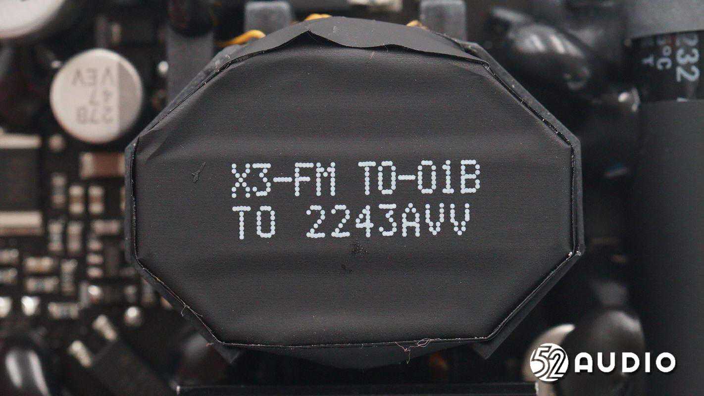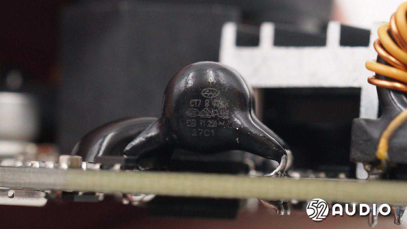 输出端滤波使用的是三颗红宝石固液混合电容。两颗规格为分别为56μF63V和33μF63V,还有一颗规格为47μF35V。