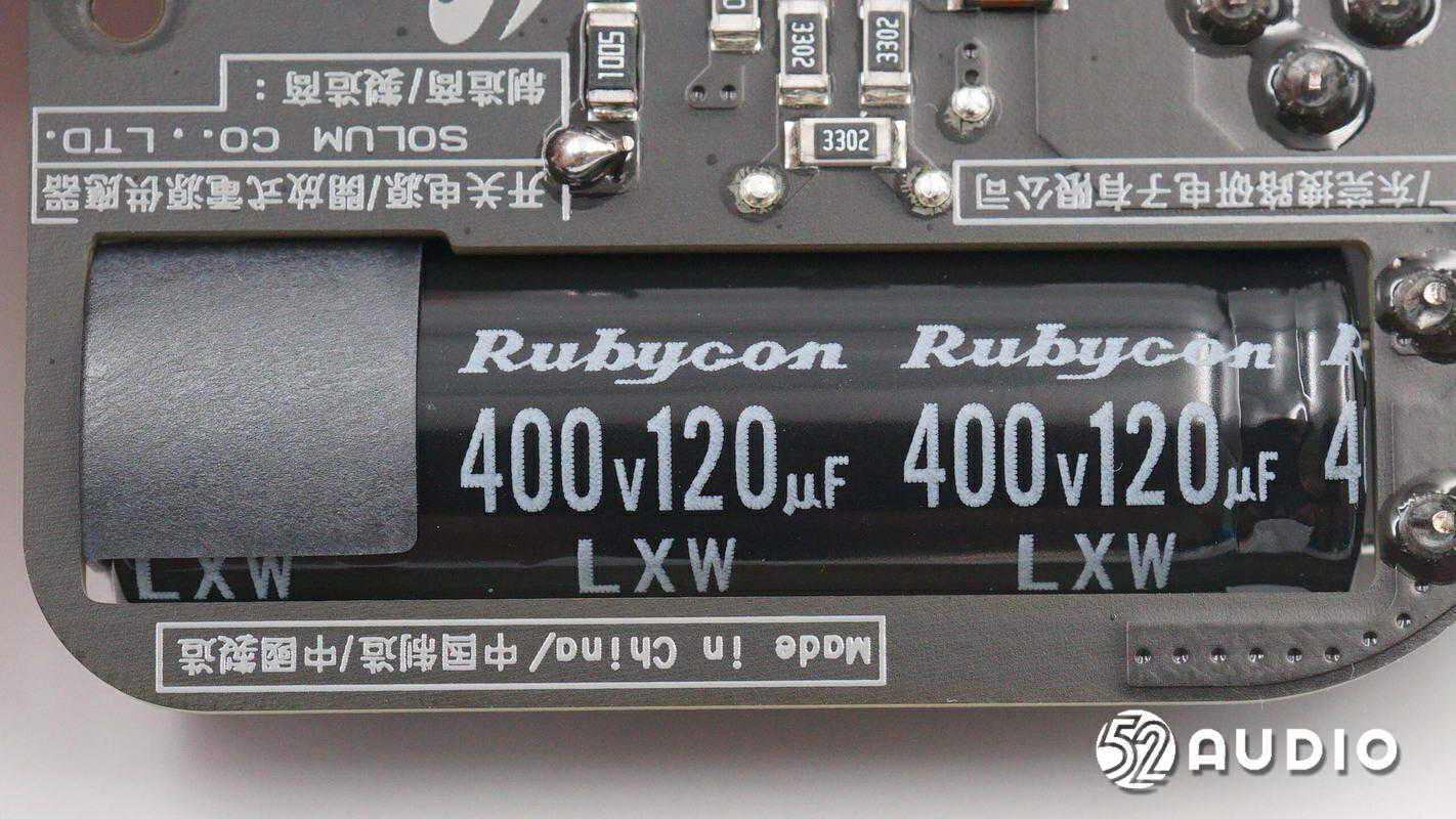 高压滤波电容来自Rubycon红宝石,400V120μF,LXW系列超小体积,10000小时长寿命。