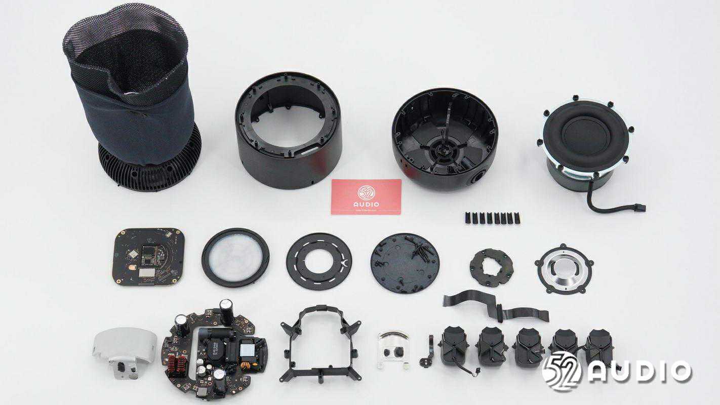 苹果HomePod(第二代)智能音箱拆解全家福。