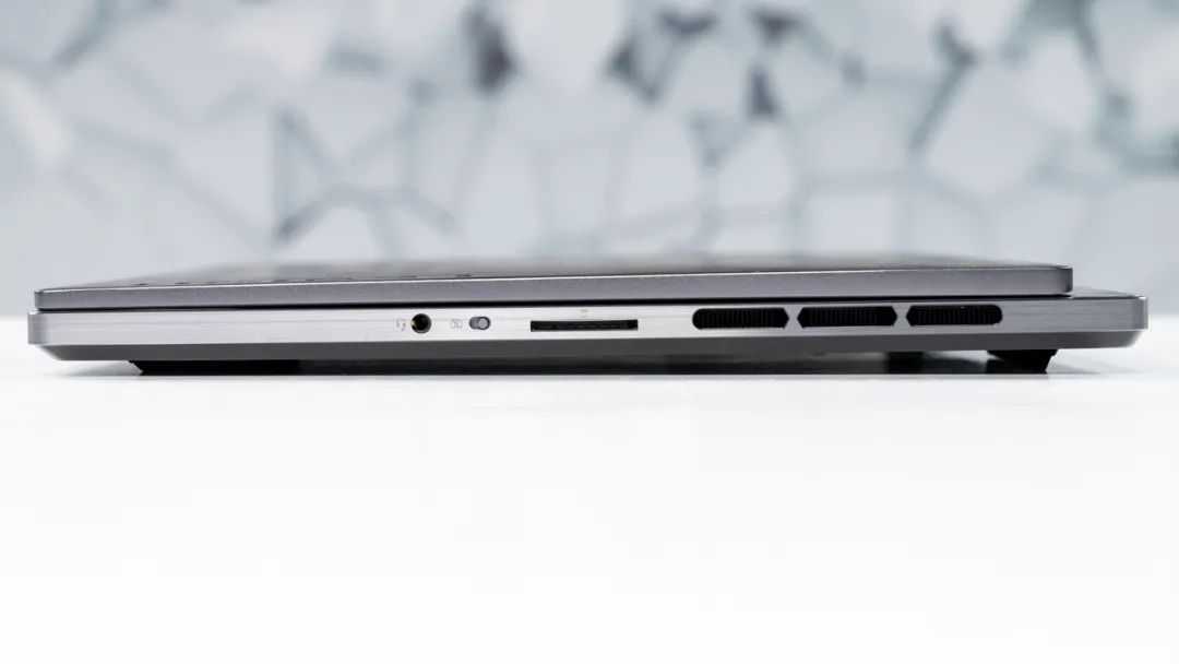 机身右侧有一个SD读卡器(UHS-I速率),和3.5mm音频接口。