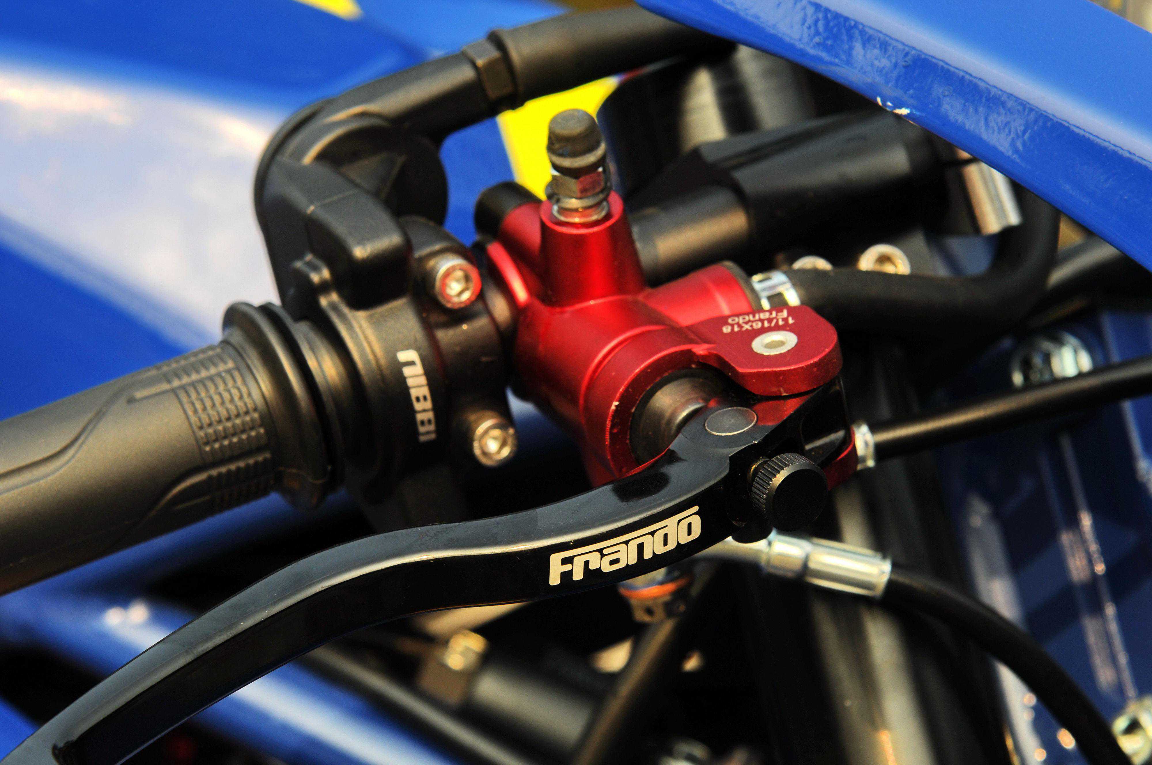 与最初的原型车相比,FR150MB的车架经过了调整,多项细节也经过优化,能适配150或者是250的单气缸发动机。复合式结构的车架,车架的主樑采用编织式钢管的设计、铝合金CNC加工而成的副车架,这一设计的好处是可以提供更好的横向刚度与柔韧性平衡,同时也为实现快速的升级和轻量化而作出了贡献。而粗壮的铝合金制后单摇臂,让全车的颜值获得了极大的提升。