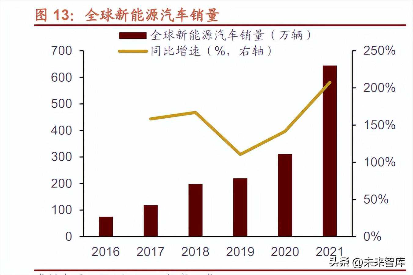 全球新能源汽车销量迅速跃升,推高汽车铝板需求。当前燃油车是汽车铝材消耗的主力,未来新能源车市场将成为汽车用铝的主要增量市场。从2016年到2021年,全球新能源汽车销量从75万辆跃升至约650万辆,过去五年复合增长率高达53.7%。据EVTANK最新预测,2030年全球新能源汽车销量有望达到4780万辆,占当年新车销量的比例接近50%。并且就单车耗铝量而言,纯电动车平均单车耗铝量比燃油车高约30kg。与此同时,汽车铝板是汽车用铝部件中增长最快的部分:依据duckerworldwide的估计,2015至2020年,北美汽车平均用铝量增长了约18%,期间汽车“四门两盖“平均用铝量增长高达163%。在需求端的良好预期下,预计至2025年世界车用铝板需求将超过400万吨。