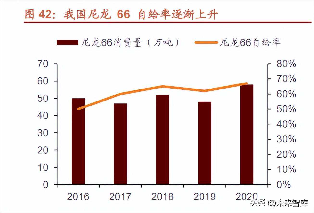 (1)尼龙66:缺少核心技术,关键原材料依赖进口,中高端产品国产替代化空间较大