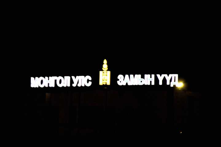“黑夜中的蒙古国徽”,摄于扎门乌德车站