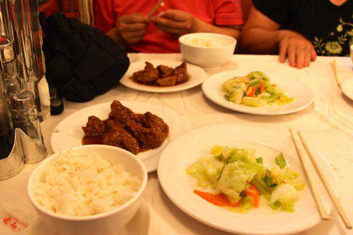 (上下行分开的方式很适合山区线路,这也就造成了一地两站的有趣现象:官厅官厅西)在到达张家口之前乘务员会发放国内段的餐券,根据不同铺位会发放午餐券和午晚餐券。请不要指望国内段的饭有多好吃,只是管饱啦。不过想想过后半个月吃不到这样的味道还是有些激动!餐车的设计也是充满了苏联式的风格,吊灯配着窗前的一朵小花很有艺术感~