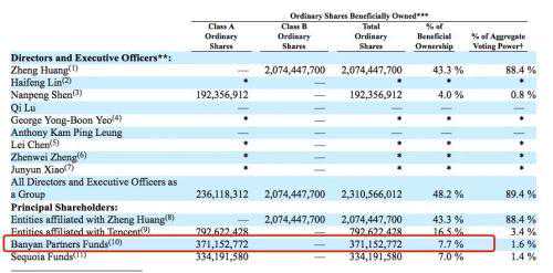 据拼多多今年4月发布的年报,高榕资本旗下的BanyanPartnersFunds持有拼多多7.7%的股份。