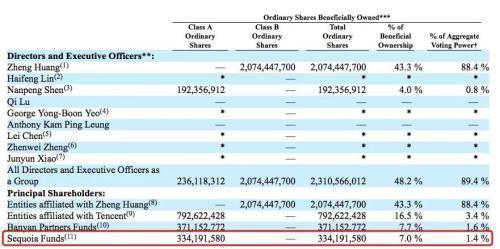 据拼多多财报,这部分股份由红杉中国及红杉资本全球旗下的多支基金共同持有,即SCCGrowth、SequoiaCapitalChinaGrowthFund等7支基金。