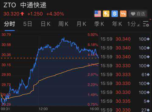 中通快递也涨超4%。