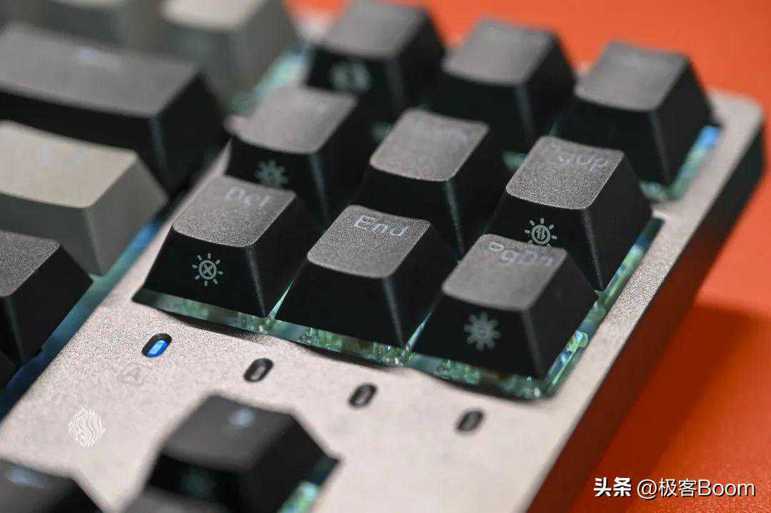 ▲在字符的设计上,我很喜欢这把杜伽K320V2星光版的设计,常用的字符都印刷在正面,一目了然。个别系统设置和灯光调节的字符,印刷在朝向用户的侧面,这一点蛮巧妙,既不占用正面字符的位置,也把一些特殊的设置标注出来,再不用去翻说明书看灯光怎么设置调节了,这一点真的很重要。
