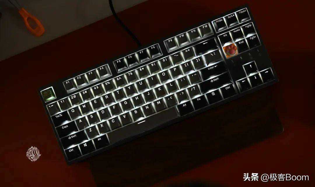 87键的小尺寸布局,大家怎么看?杜伽K320V2星光版就是这样的87键布局,不过并没有采用紧凑的设计,虽然是87键但其实体积并不小,因为它是按照最传统的全键盘尺寸来设计的,每个按键之间间隔不小,而且右边的系统按键区域的空间也没有挤压,甚至还有四颗系统指示灯。正如杜伽所言吧,这是回归键盘的本源,也就是最传统的经典样式。除了没有数字键区域之外,其实这样的一个布局也的确是比较经典。