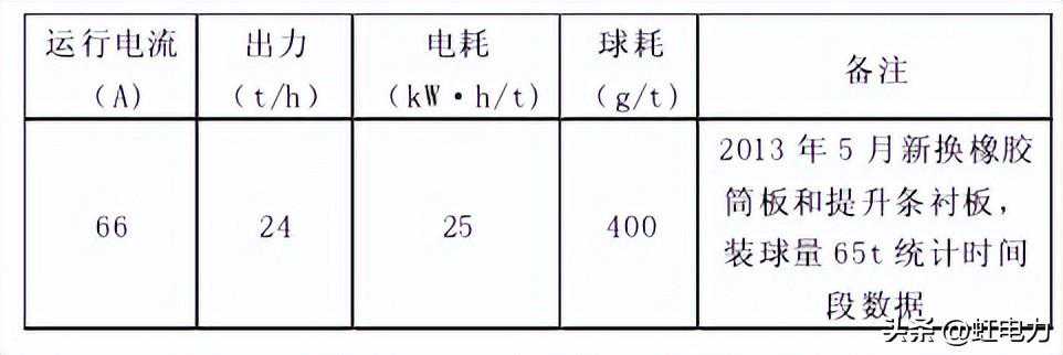 表2FGDM3280球磨机更换橡胶衬板后运行参数记录表