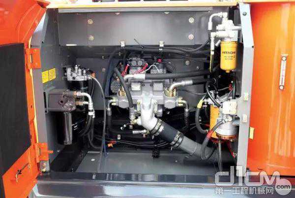 燃油滤清器、燃油预滤清器、先导滤清器、机油滤清器和电动燃油泵集中在泵室。燃油箱排水和更换滤清器等工作站在地面即可完成。采用膨胀水箱,无需频繁加注冷却液。