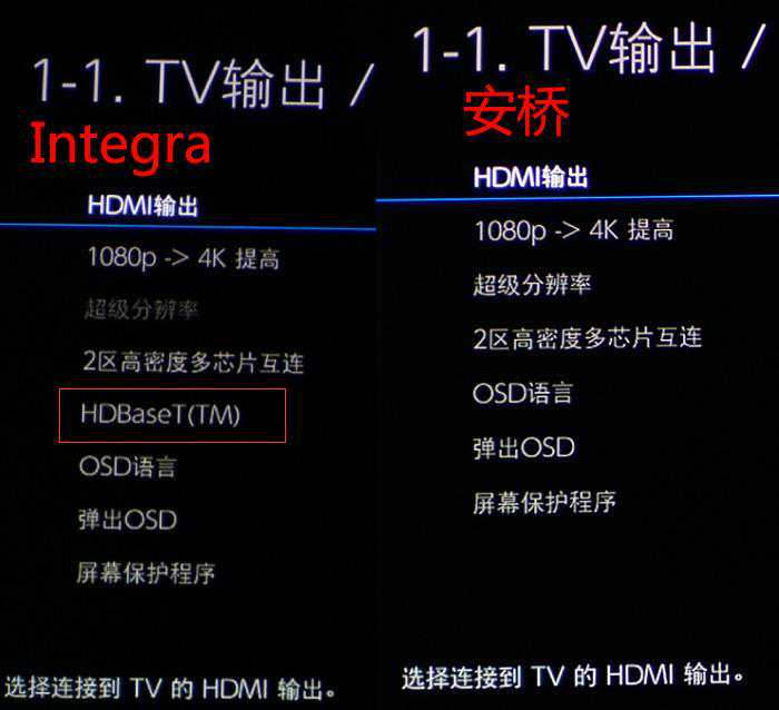 在第一页里面,就有一个只有Integra功放才有的重要功能,叫做HDBaseT。