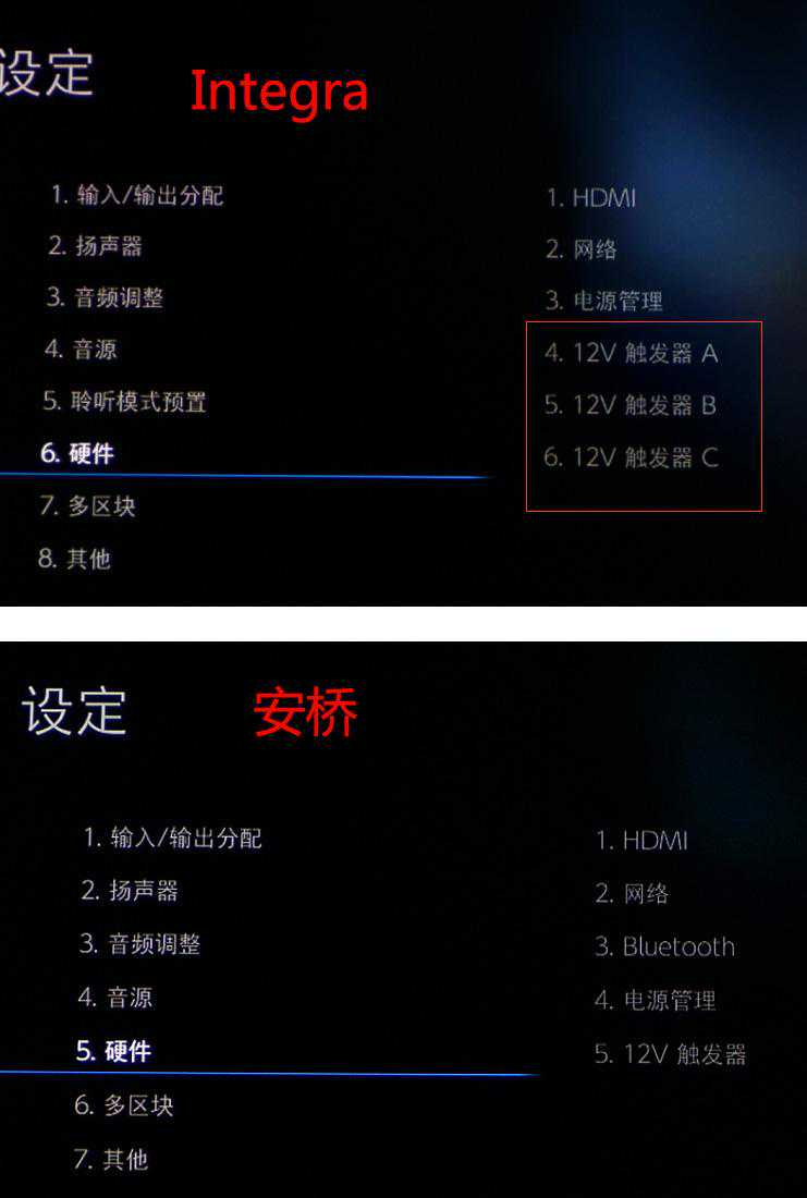 而在这个小节里面,我重点给大家找出Integra和安桥TX-RZ3100在UI中,功能不同的地方。