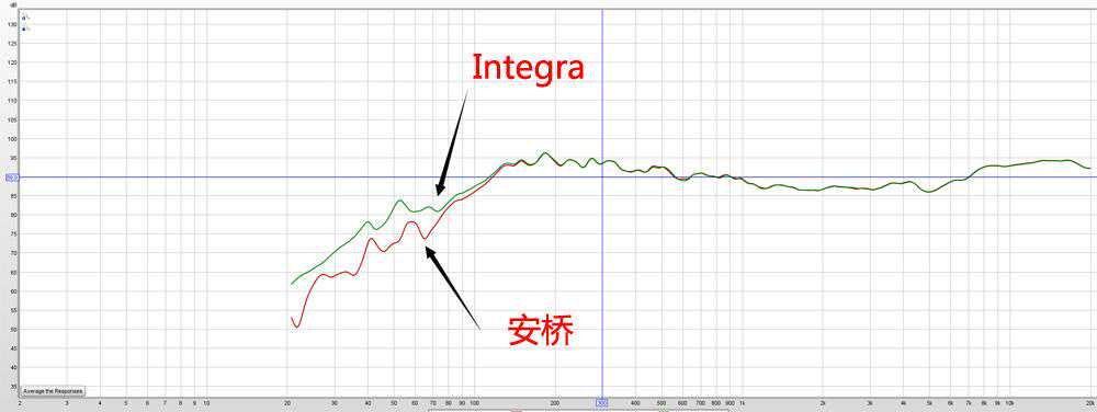 而实际测得的数据也能说明一些问题,Integra的确在设置主箱设置了80Hz的分频点后,还是给予系统更多的低频。但两者的中高频部分,就频响而言,完完全全地重合在一起。这说明两者的中高频信息量,是完全一致的。