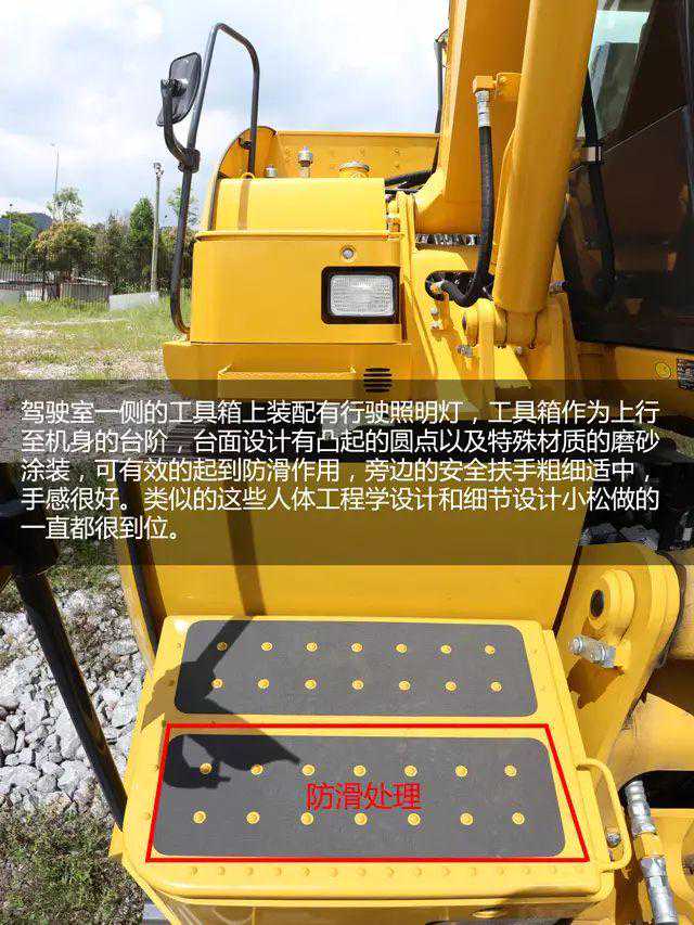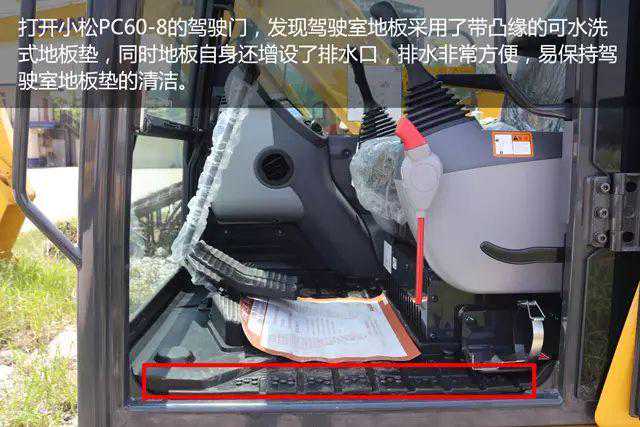 对小松PC60-8机器的外观很满意,日常驾驶的时候也非常爱惜,个人觉得小松PC60-8设置放杂物的工具箱很方便,容量大小也够用,放一桶黄油是没有任何问题的。