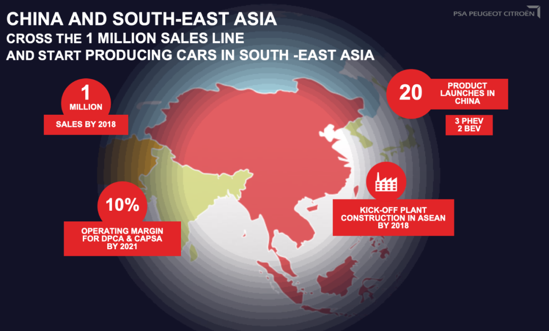 新战线,调整PSA的市场结构。欧洲市场:2020年达到乘用车市占率第2、轻型商用车市占率第1、主流品牌净利率第1的目标。中国市场:提前两年达到100万台销量,DPCA以及CAPSA在2021年的净利率达到10%。其他市场:雪铁龙进入印度,标致进入非洲和南美,海外市场销量增长300%。