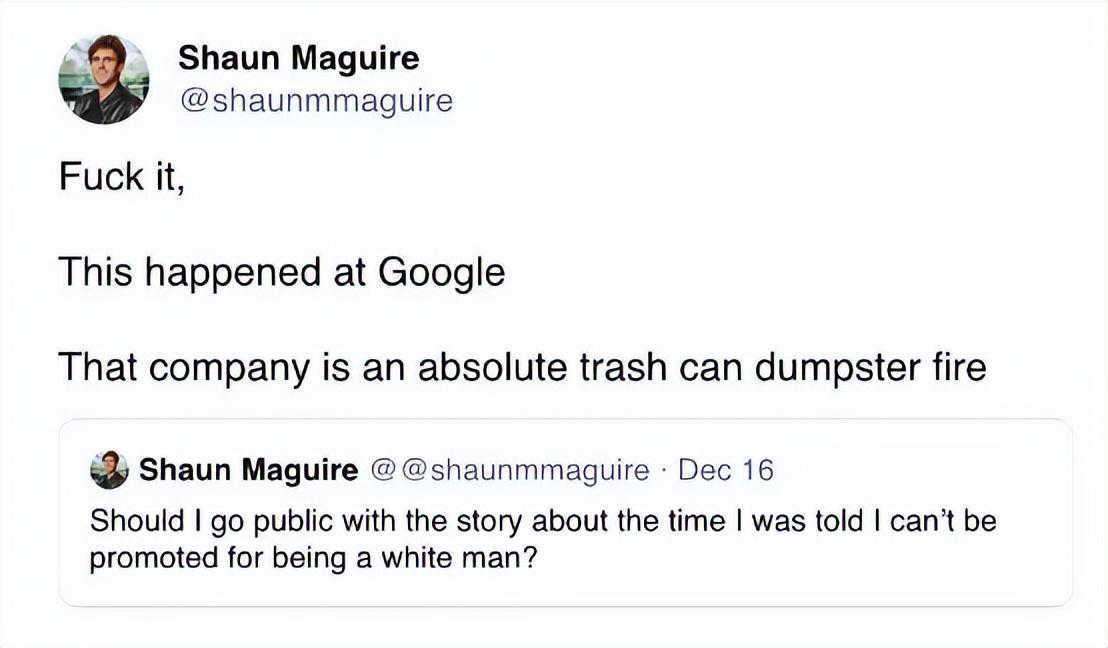有媒体记者表示,他采访过的每位谷歌经理都有类似的抱怨,有时候哪怕候选人方方面面都好,但就是因为白人男性的身份,导致他们不敢大胆聘用或者提拔。几乎所有受访者都对谷歌的晋升制度颇有微词,因为升职的原因不再由绩效决定,大家也都见过经理因为没注意到照顾少数族裔而受到警告的情况。而且“政治正确”已经成为无法触碰的底线,一位产品经理解释道,“我知道自己的判断是对的,但我不可能拿自己的职业生涯冒险。”