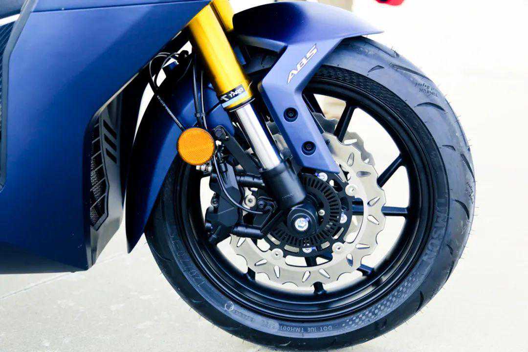 制动系统前为双浮动盘配对向四活塞卡钳,后为单盘,配前后ABS。