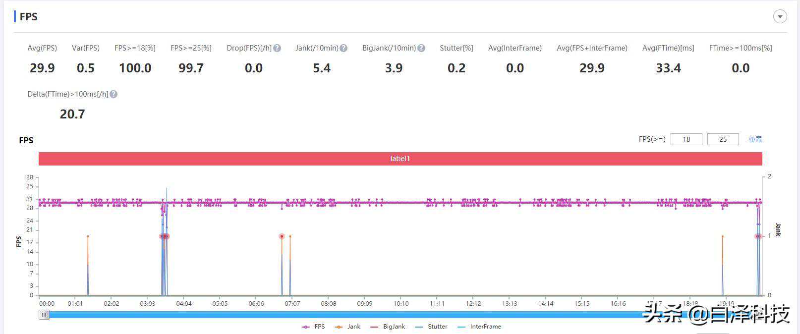 第二次选择的是HDR高清画质+超高帧率+经典风格模式,还是四人排位赛,游戏时长23分钟,平均帧率39.9FPS,每分钟10min帧数跳动3次,平均温度32.9℃。